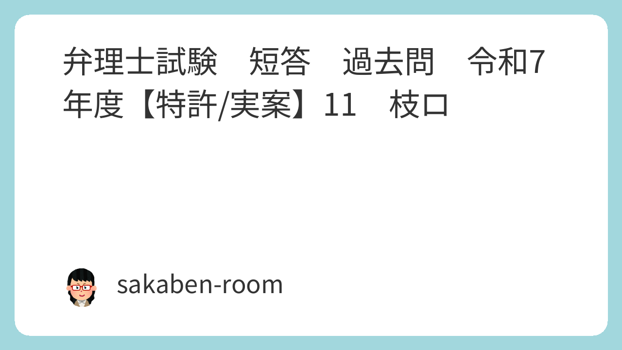 次、弁理士試験 短答 過去問 令和7年度【特許/実案】11 枝ロです。
